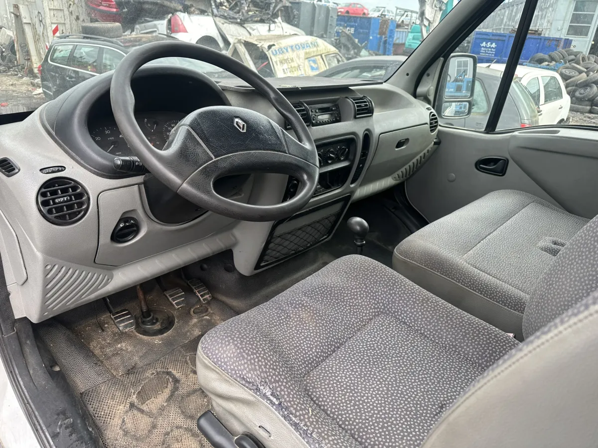 Fotografie vozu Renault Master, 2003 byly pořízeny při jeho příjmu na sklad. Aktuální stav vozidla se může od fotografií lišit. Níže uvádíme seznam náhradních dílů z tohoto vozu, které jsou momentálně dostupné k okamžitému odběru. Pokud zde nenajdete požadovaný díl, můžete nám napsat poptávku na jeho demontáž – daný díl Vám následně připravíme k vyzvednutí.