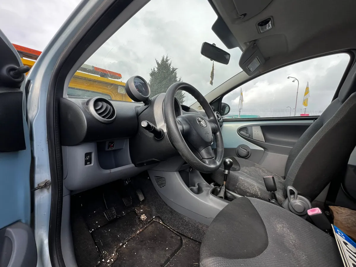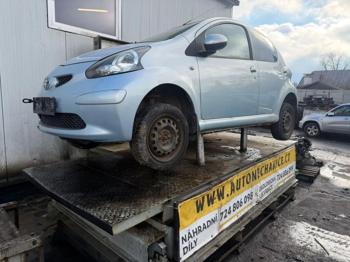 Fotografie vozu Toyota Aygo, 2007 byly pořízeny při jeho příjmu na sklad. Aktuální stav vozidla se může od fotografií lišit. Níže uvádíme seznam náhradních dílů z tohoto vozu, které jsou momentálně dostupné k okamžitému odběru. Pokud zde nenajdete požadovaný díl, můžete nám napsat poptávku na jeho demontáž – daný díl Vám následně připravíme k vyzvednutí.